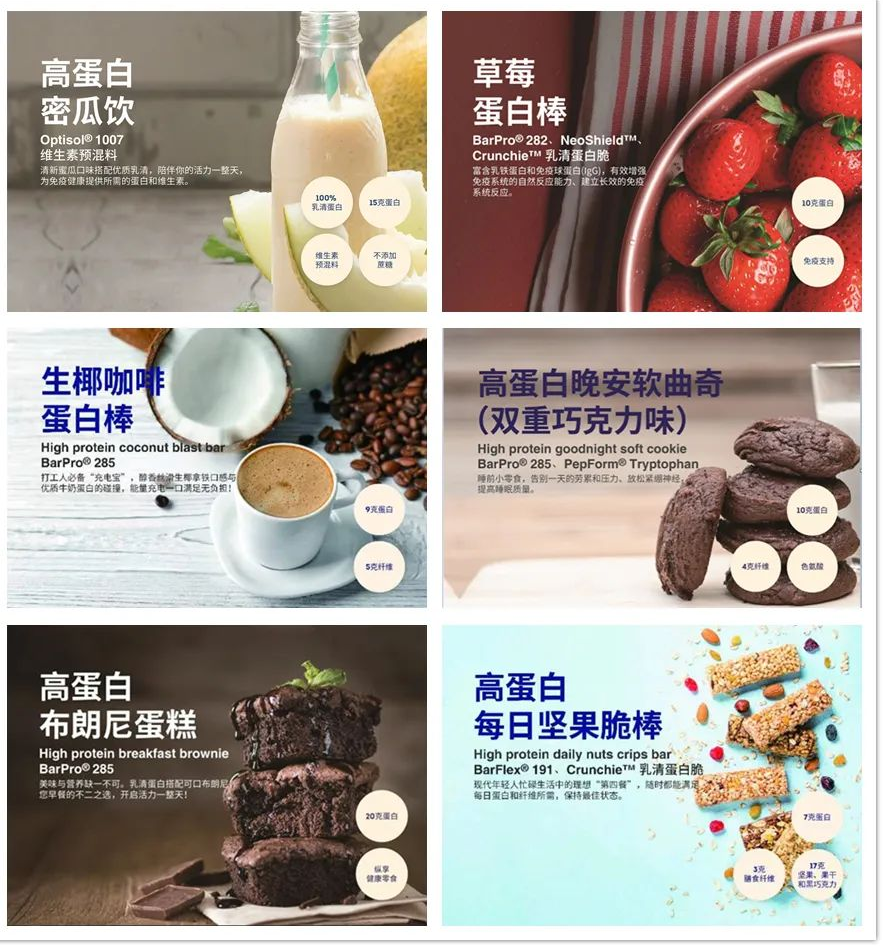 为了顺应消费者的趋势,并考虑到蛋白棒和零食配方中的硬化、褐变等问题,哥兰比亚开发出了BarPro®牛奶蛋白、BarFlex®等产品,助力品牌打造符合当下消费者兼顾口感和营养需求的产品。