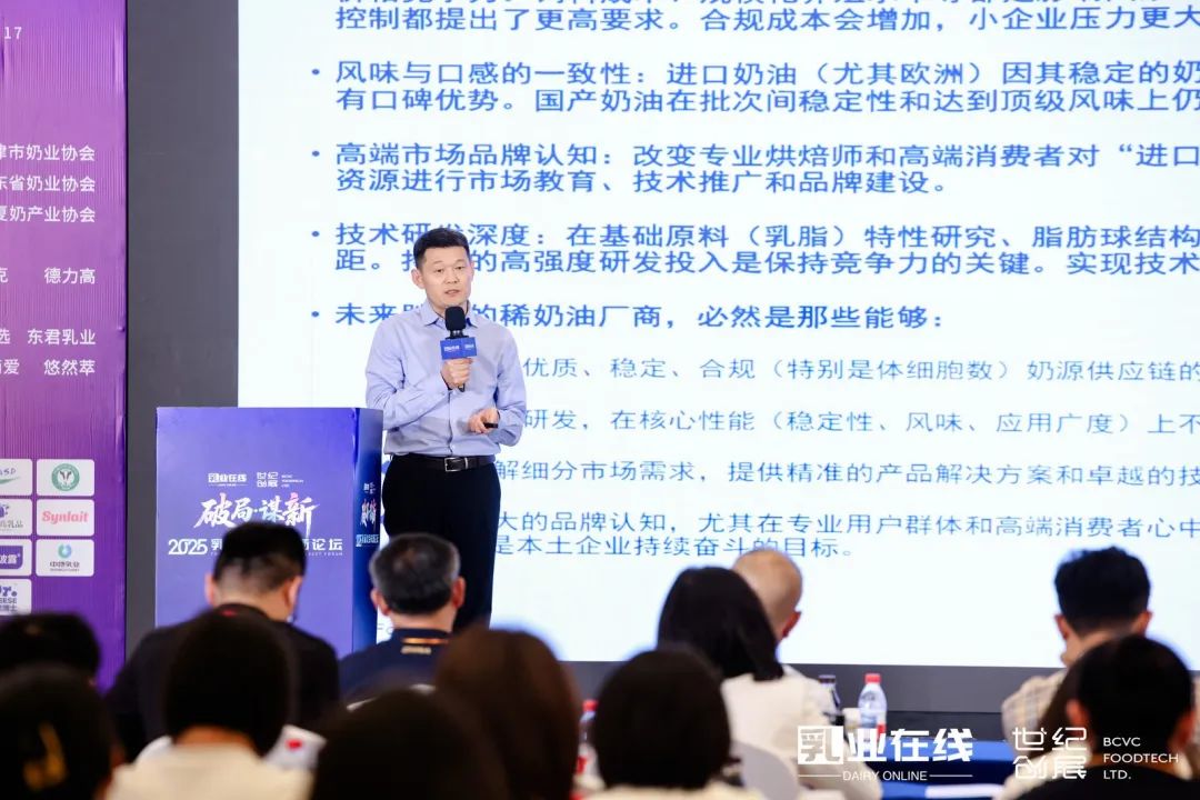 立高食品股份有限公司产品总监徐霖介绍了稀奶油的分类、稀奶油“族谱”、稀奶油制作过程、奶油各品类所处的不同生命周期以及应用渠道。