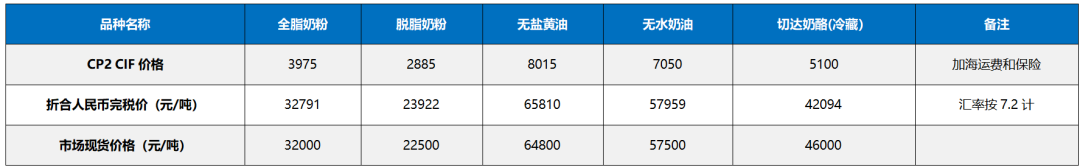 未来投放的中长期(12个月)预测:各品种总量基本和上次预测保持不变,但10-12月间发船,每次拍卖速溶全脂奶粉供应比例从30上调到35%,普通全脂奶粉比例有所下调。