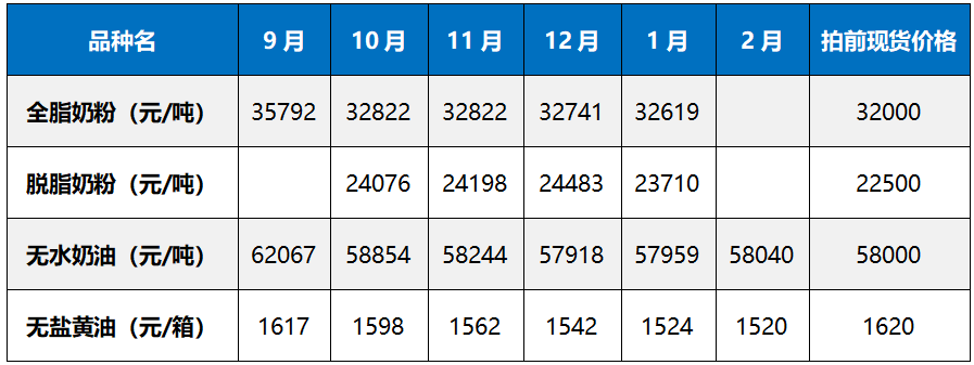 和拍前现货市场比,除黄油外,各品种均倒挂幅度加大。