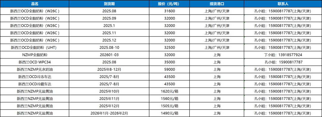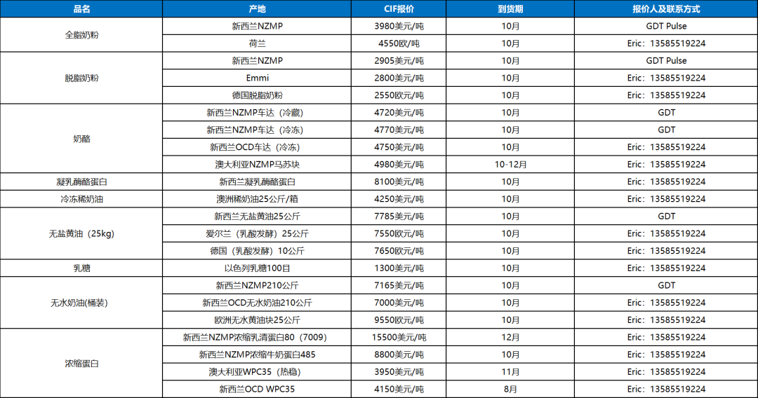 5. 新西兰主要厂家/产地动态:(1)新西兰主要乳企国内销售架构调整完毕,新模式预计把重点客户增量列为下产季主要目标。(2)美国乳品产量反弹,奶酪和蛋白成为未来增产重点。