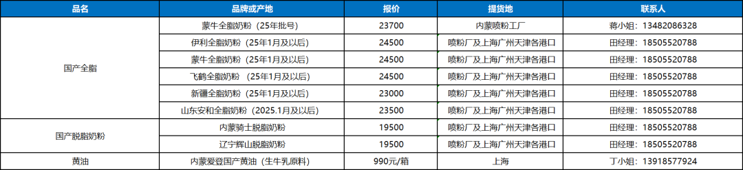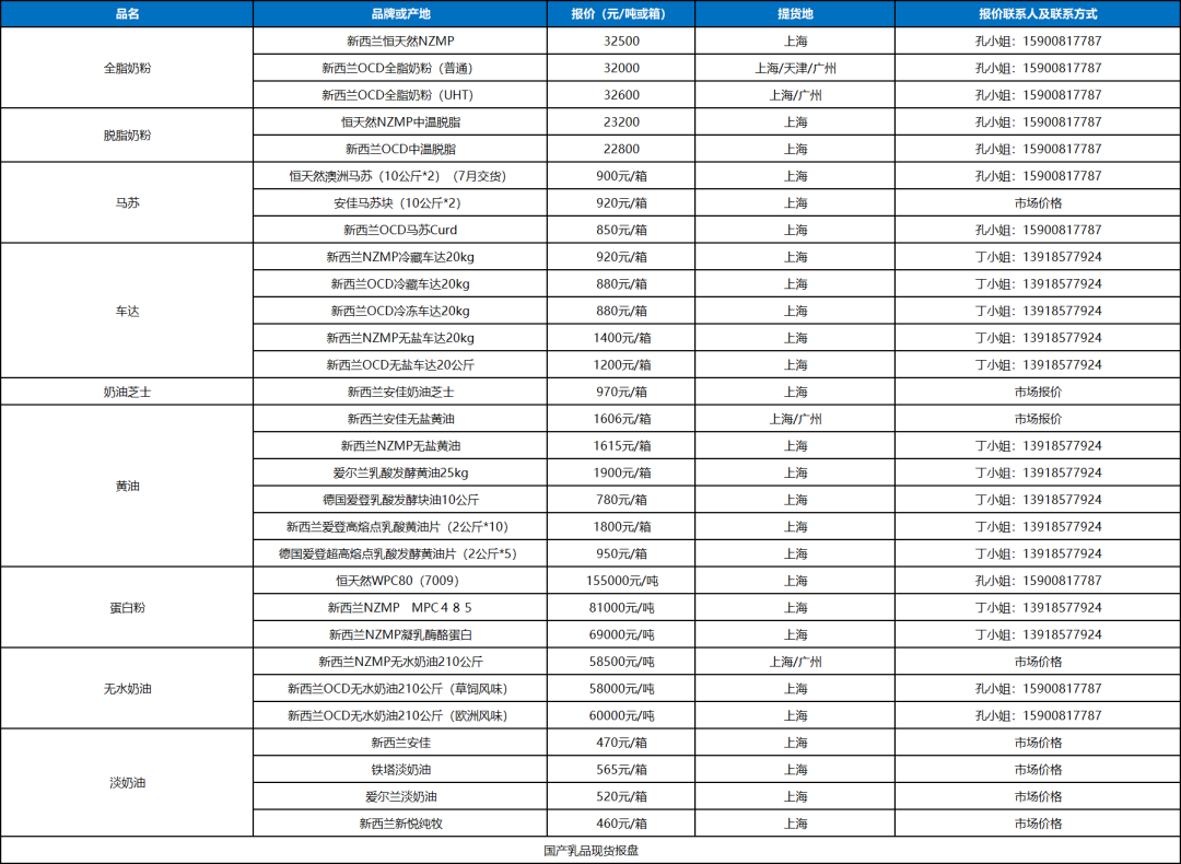 黄油:新西兰黄油区域差异明显,南方主要贸易商一改前期扛盘动作,主动大幅度折价出货,华东贸易商仍然坚持盘口1600元上方,餐饮品牌黄油由于到货成本较高,继续保价护盘;国产黄油价格走势较为稳健。