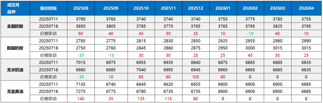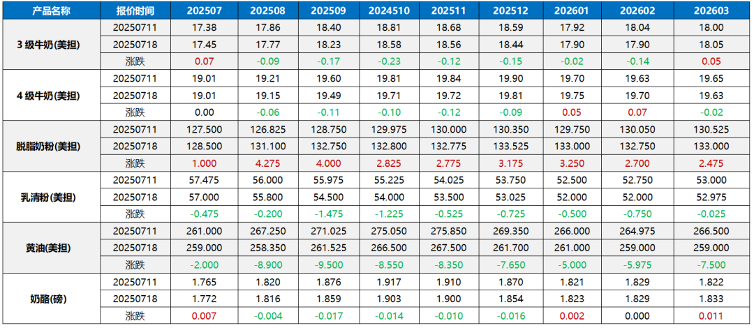 拍卖的强势拉动奶粉各品种反弹,其中全脂奶粉和无盐黄油走势强劲。