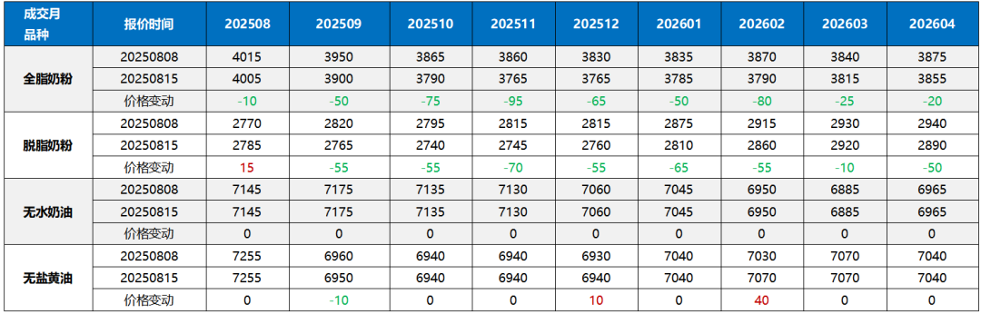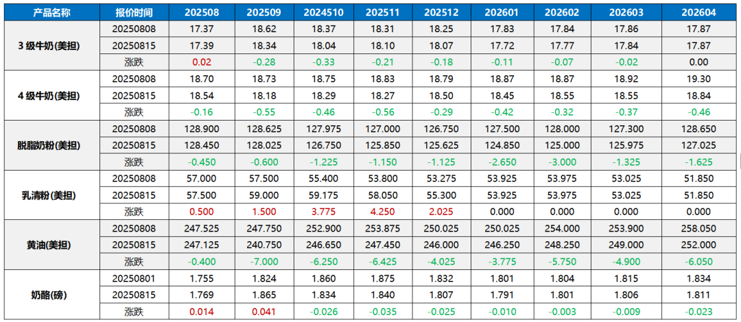 除了乳清粉连续2周上行外,其它品种走势低迷,黄油不断创出年内新低价格。