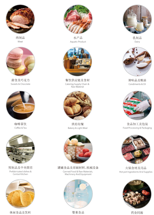 本届展会展品范围覆盖15大板块,包括肉制品、水产品、休闲食品及饮料、乳制品、甜食及巧克力、餐饮供应链及食材、调味品及粮油、咖啡茶饮、烘焙轻餐、食品加工及包装、预制品及中央厨房、罐藏食品及原辅材料、机械设备、火锅食材及用品、婴童食品和药食同源产品。
