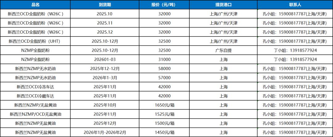 4. 国内合同外生奶及喷粉情况:双节备货基本结束,主要乳业龙头预计节后将开始喷粉,副龙头目前仍未有明确计划。