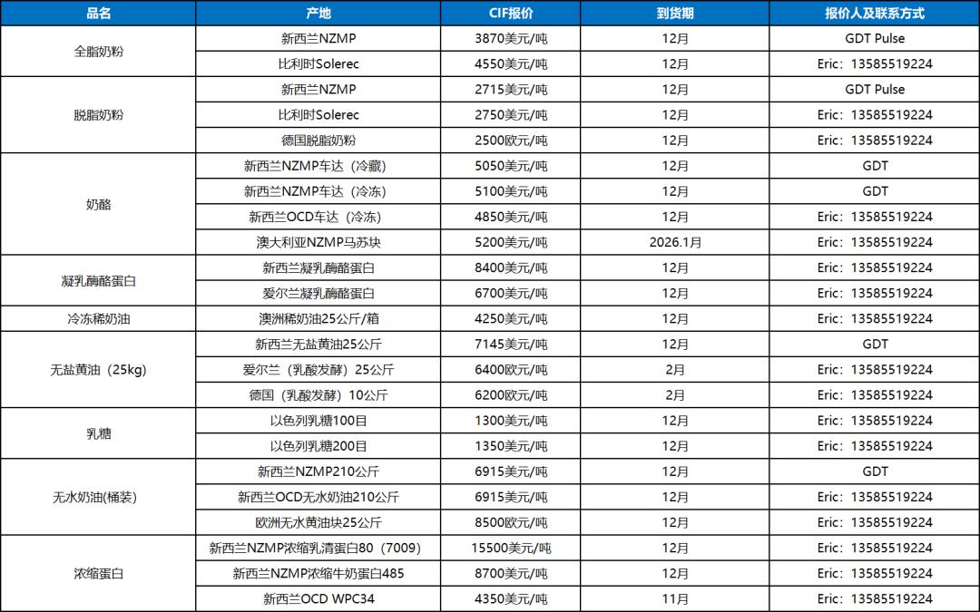 全脂奶粉:本周进口全脂奶粉节前上行为主,市场基础报价维稳在33000元/吨上方;国产奶粉现货坚挺,主要品牌25000走货平稳,二三线品牌趁机跟涨。