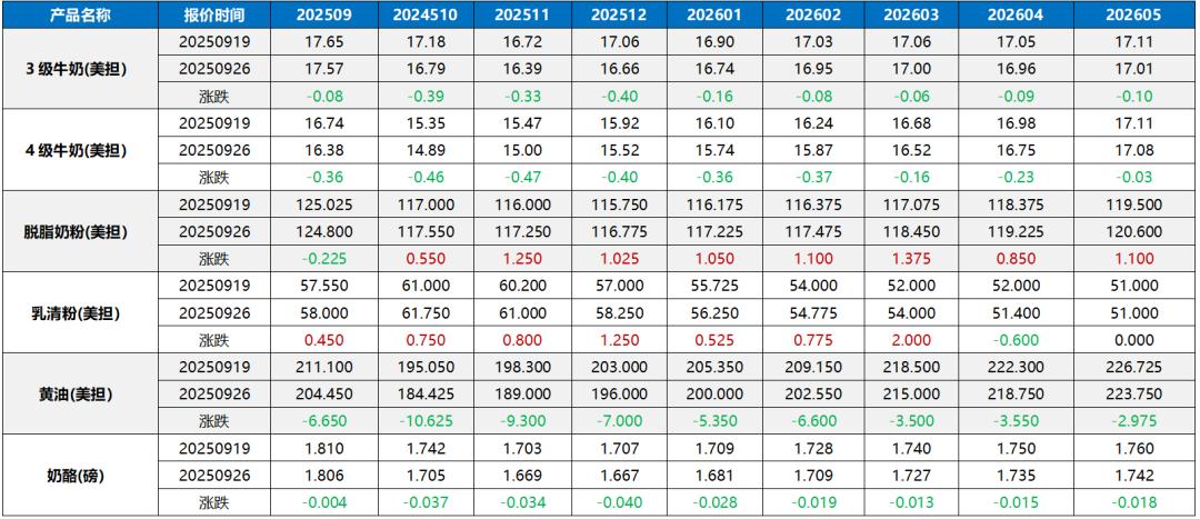 奶粉和乳脂跌幅减少,黄油远期甚至有反弹迹象。