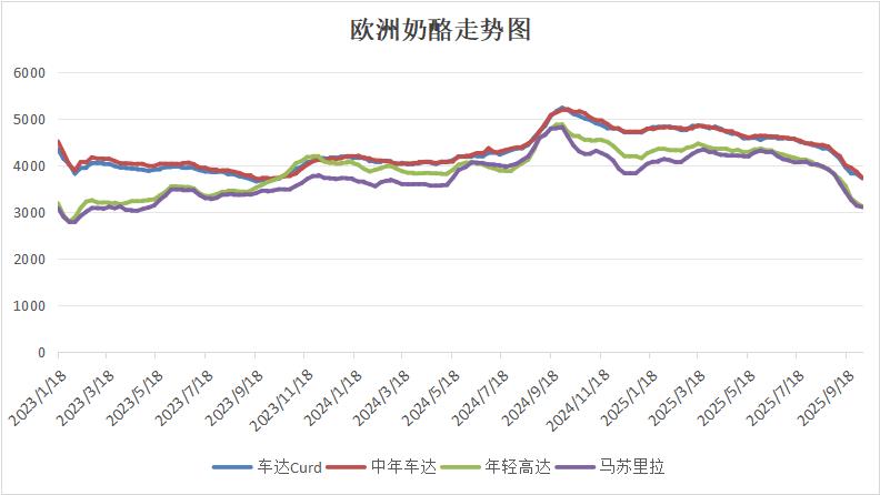 和美国乳品近期联动密切的欧盟产区也未能幸免,再次下行。