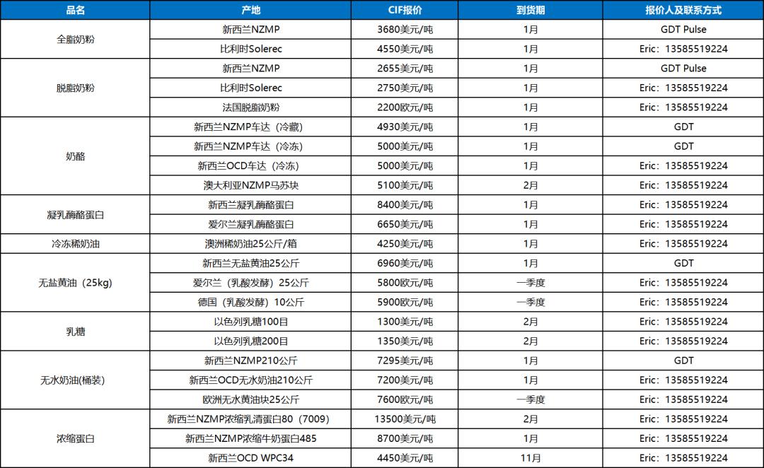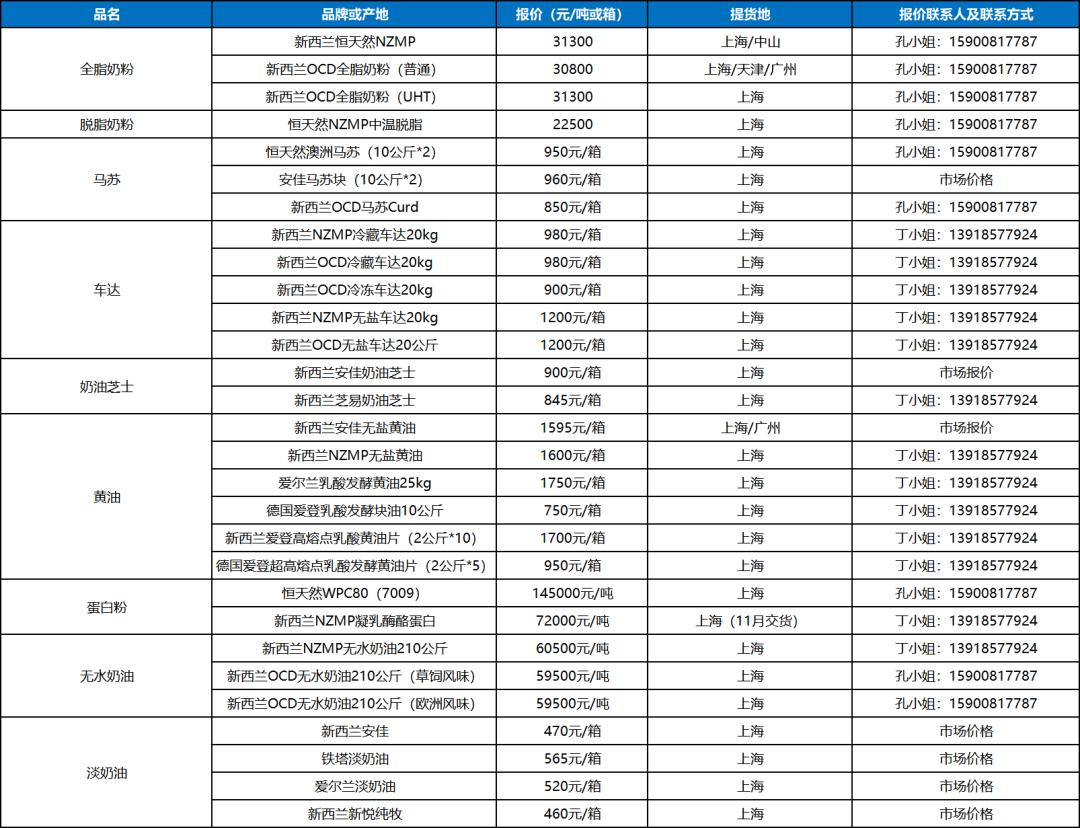 大宗乳品现货报盘