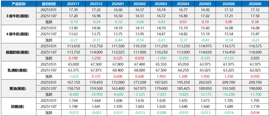 美国乳清和脱脂奶粉表现稳健,而黄油暴跌仍未停止。