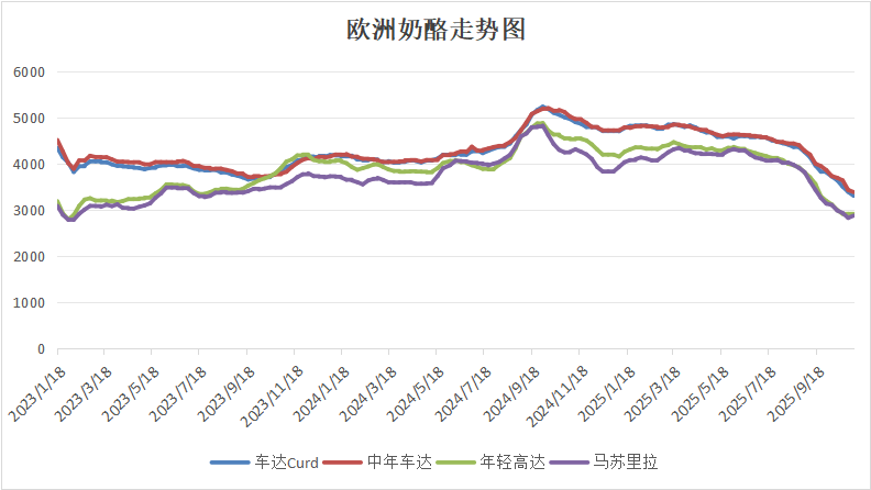 欧洲脱脂奶粉止跌,乳清保持上行态势,黄油持续下行。