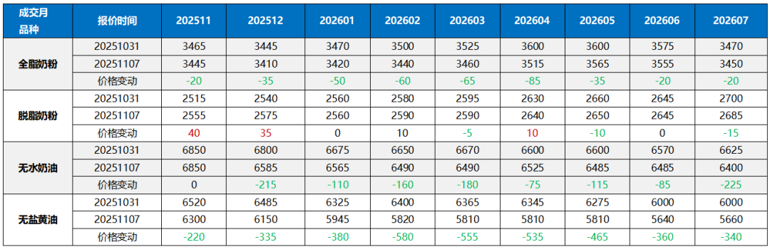 新西兰脱脂奶粉表现坚强,全脂奶粉和黄油惯性下滑,无水也被带崩,开始大幅度下滑。