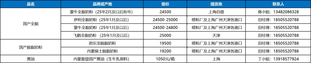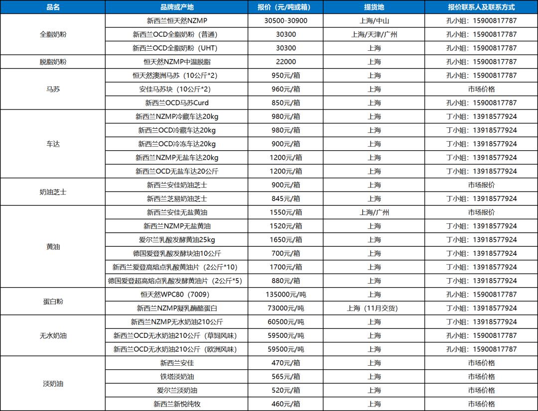 大宗乳品现货报盘