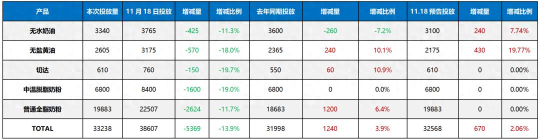 较11月18日的拍卖预告比较,乳脂再次不告而增。