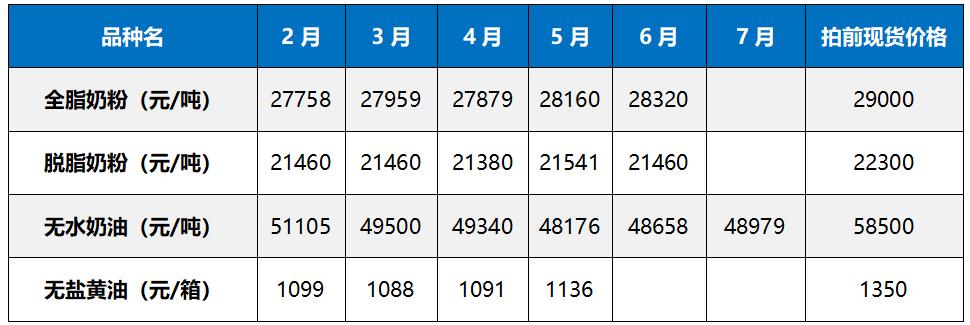 2.黄油:暴跌幅度超乎想象,与其它区域差价大为缩小,但考虑到欧洲和美国的跌幅未减缓,预计后期仍有一定空间下挫,继续观望。3.切达奶酪:如期反弹,欧美奶酪整体表现平稳,国内需求旺盛是上行主因,也要关注后期新西兰增产风险,逢跌可入,逢高观望。4.脱脂奶粉:被大盘带下,由于到货量减少,后期国际价格下挫空间不大,可持续关注。5.全脂奶粉:本次抵抗力超预期,高于小拍的成交价使得市场重燃预期,不过考虑到本产季高峰尚未过去,可等待年后国内奶价明朗。