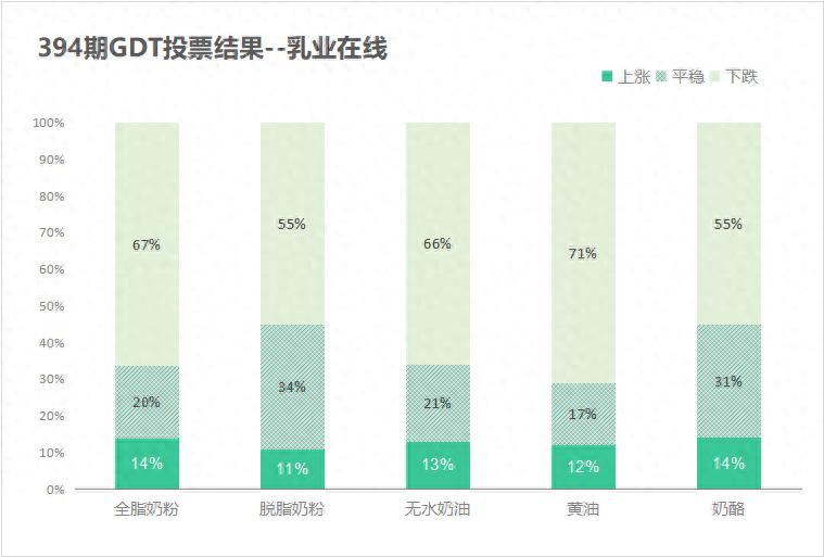 在12月16日中,我们发出了关于全脂奶粉、脱脂奶粉、奶酪、黄油、无水奶油价格走势预测的投票。投票结果如下: