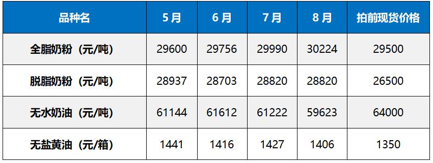 FIC贸易商聚会都觉得各品种累计风险已高,拍卖结果配合国内买家心声,全脂奶粉如期下落,考虑到该品种已经连续一年大幅度垫底新西兰产线回报,下产季即使奶产量增加,供应大度增加概率不大,国产奶粉27000以上的报价,使得进口全脂目前价位上风险较低,应该是目前最值得关注的品种。